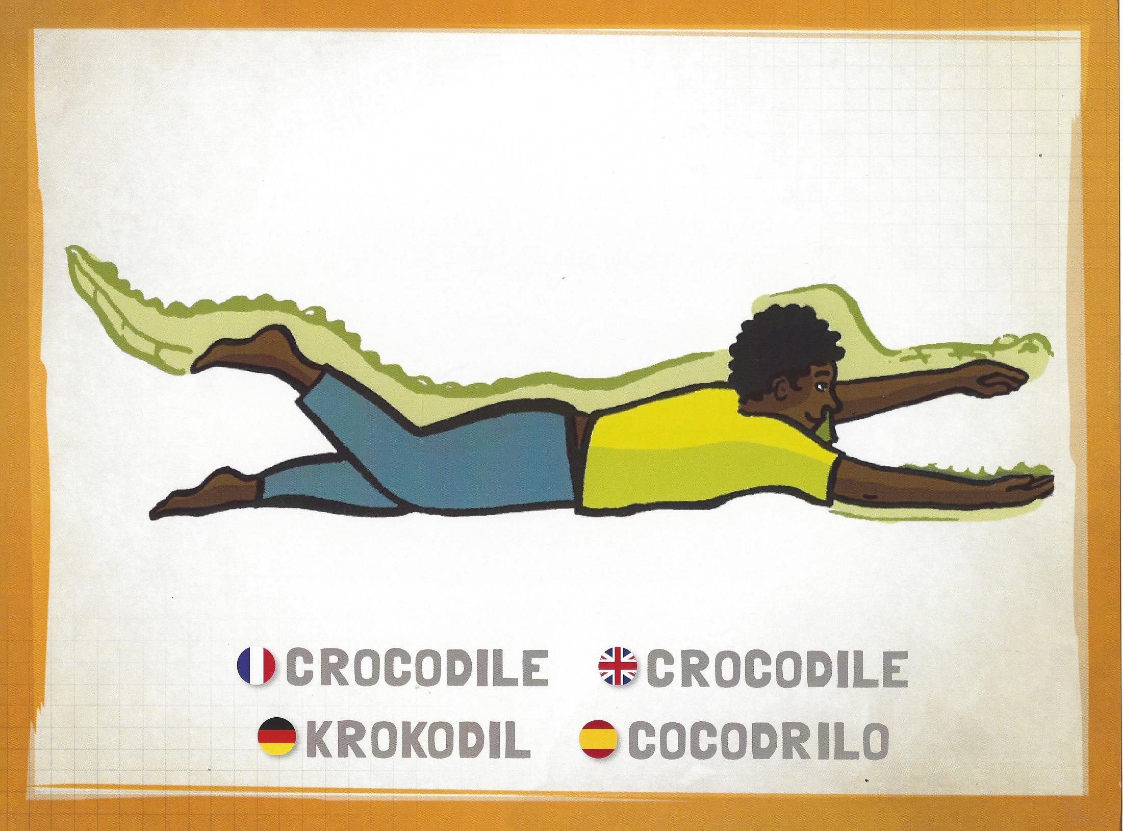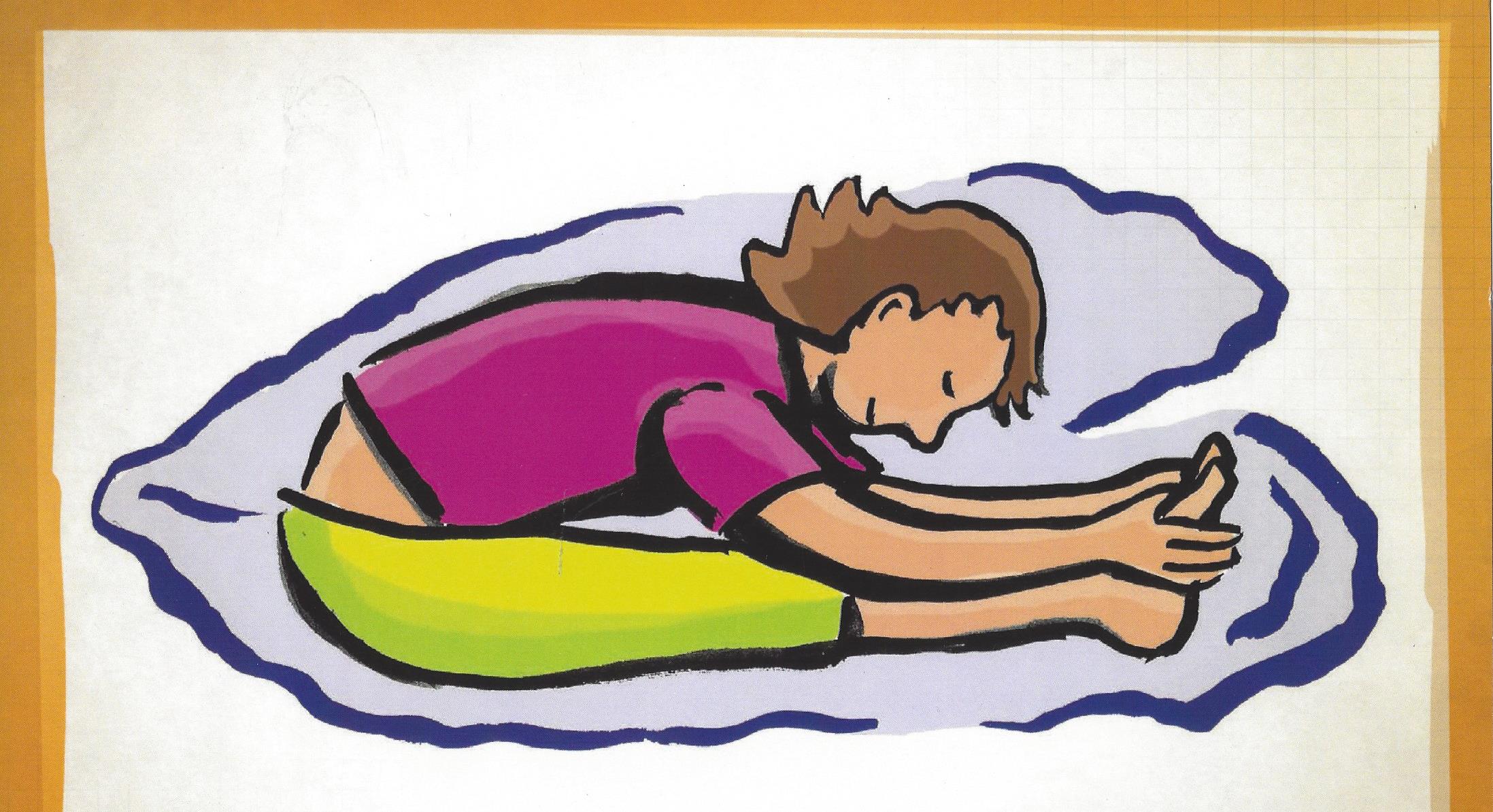 => Une phase d’étirements avec : le nuage qui se transforme en étoiles de mer (bras et jambes étirés le plus possible), le paon, le cobra, le pont, le chat, le chat qui marche, les gouttes de pluie (allongés sur le dos, dos bien à plat sur le tapis, les jambes levées, on imagine que l’eau ruisselle le long des jambes en secouant doucement les jambes) ; la coccinelle (étirement du haut du corps) ; la pince (étirement de l’arrière du corps) ; le crocodile (étirements bras et jambes opposés pour aider à la latéralisation) ; l’arbre couché..